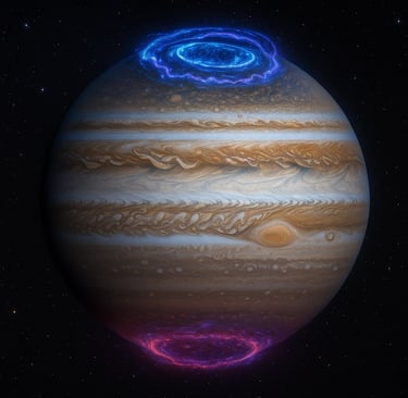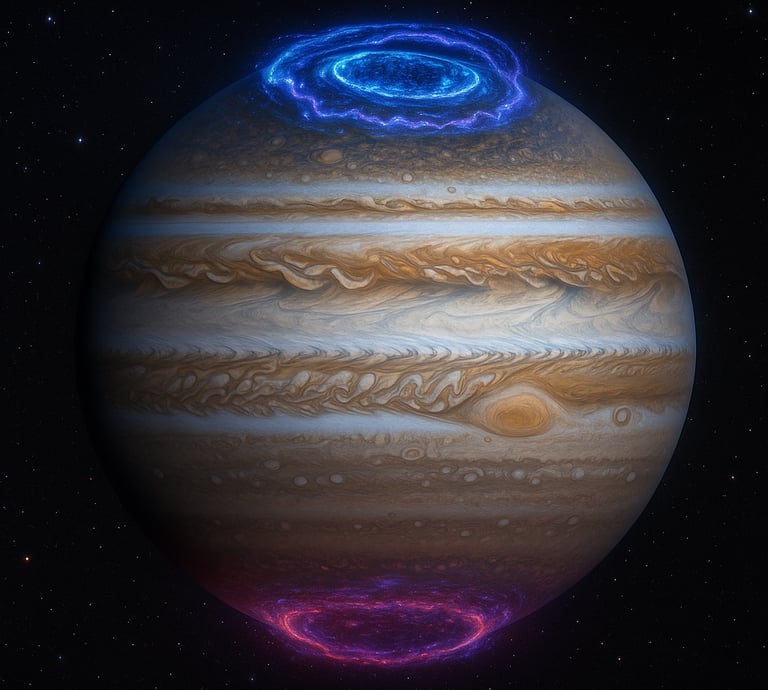 Outro dado curioso foi a diferença de comportamento entre as auroras do norte e do sul de Júpiter. Embora o planeta tenha um campo magnético fortíssimo, ele é assimétrico. Isso gera efeitos distintos em cada hemisfério, fazendo com que as luzes polares não sejam espelhadas, mas sim únicas em suas formas e intensidades. É como se cada lado do planeta tivesse sua própria personalidade elétrica.