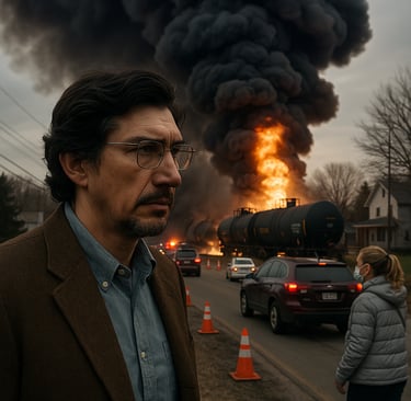 No início de fevereiro de 2023, a cidade de East Palestine, em Ohio, foi palco de um acidente chocante. Um trem carregando produtos químicos perigosos, incluindo cloreto de vinila, saiu dos trilhos e provocou uma enorme liberação de gases tóxicos. O cenário que se formou logo após o desastre parecia tirado diretamente de uma cena do filme. Ruas evacuadas, moradores usando máscaras, sirenes ecoando pelas redondezas e um céu encoberto por uma nuvem química.