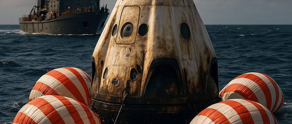 O retorno foi meticulosamente planejado. A separação da estação orbital ocorreu no sábado, marcando o início de uma longa jornada de volta ao planeta. Ao atravessar a atmosfera terrestre, a cápsula enfrentou temperaturas intensas, causadas pela fricção com as camadas superiores do ar. Mesmo com os riscos inerentes a essa fase, tudo correu de acordo com o previsto. A Dragon caiu suavemente nas águas do oceano, pouco depois da meia-noite, acolhida por navios de recuperação da SpaceX que já aguardavam em ponto estratégico.